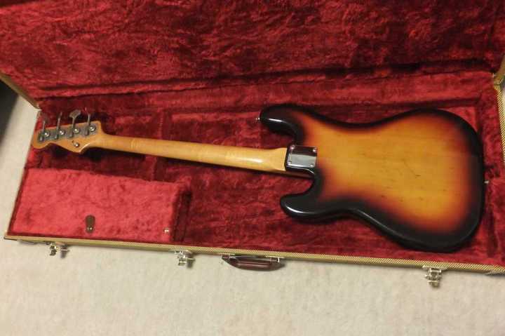 | Fender Japan PB62-70 Fujigen 1982 Made MIJ JV serial This is good condition JV serial Precision Bass. According to the Fender Japan Catalog, this model have Japanese Made PU type. The PU has the cloth wire type. Also, the catalg said PB62 3TS should be PB62-75. I'm not sure waht is correct. The wood, it looks like ash as catalog.The weight is 3.73Kg It is pretty light weight. The neck is maple 1P (Nut Width 42.6mm - 1982 date stamp. This neck has very good tiger flame. It is very good looks. Truss Rod is working but tighten maybe 60-70%. Currently, the neck is straight and good feel. The frets are proper condition. The body condition is good as this aged bass. There are scratches and dents. BUt not really bad looks, really vintage looking. This bass is Poly finished, not Nitro, anyway. The metal parts are proper condition.Tuner is reverse type. The bridge saddle is sporal type. It is very hard to find out good condition JV serial bass guitar. This is one of good one, anyway We are going to ship this bass with new tweed hard case. Well, enjoy real JV serial bass ! |