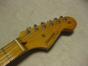 | Fernandes Revival RST-50 Stratocaster White This is proper condition Revival stratocaster replica. Well, I rated mint-, because body surface have a bit dents and scratches. It looks like more vintage guitar, anyway. The neck is straight and frets are proper condition (Low positions are bit worn) Good C standard grip Maple 1P neck. The nut width is 41.25mm The body is probably (their catalog said) Ash (maybe 3P). It is 3.47Kg. It is standard weight as stratocaster model. The metal parts are a bid rusted. This is 1st generation Revival, so it should be in 1983-88 made. Of course, the bridge saddles have the revival marked. The tone, it is very good tone, I love. The pick up are all gray bobbin type. This is why many players want to use this series. Pick Guard was changed by previous user, I thought. I have only changed the output jack to switchcraft made. Please try the real JV guitar! We are going to ship the guitar with second hand gigbag. |