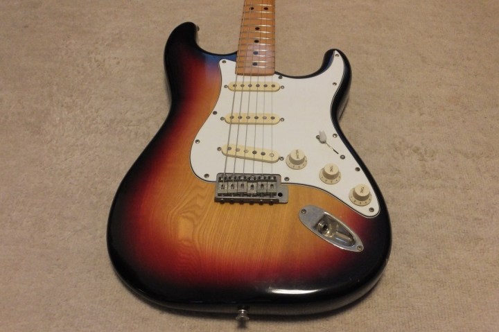 | Fernandes 1978-79 Tokai made Stratcaster model This is one of high rate evaluation guitar by many professional people. Fernandes made this model by the time they started the revival series. Japanese collectorssaid "Stone Logo" type. I personally like this series. It is not really collector item. Many people just look for the good replica. Most of them are not care about the tone. Anyway, this guitar is good I love. The body is SEN with good wood pattern. It is 3.53Kg. The neck is maple 1P, Rose wood finger board. The nut width is 41.7 mm. The neck grip is stndard C. Well, the neck is straight no twisting. Maybe you could feel a bit thin compare with Fender Japan Start. The frets are proper condition. The previous user didn't change the parts. I think it should be original condition except army bar.. We are going to ship this guitar with soft carrying case and army bar. This is a good JV guitar! Enjoy it! |