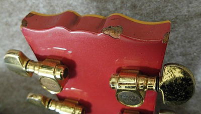 | YAMAHA SG-1000-24 1983 Made MIJ JV It's a very rare color Yamaha SG-1000-24. From serial, it should be made in 1983. I have checked the data of Yamaha SG, but Yamaha only offered Cream white and Red Color on their catalog. This model was developed based on SG-1000N, therefore the body thickness should be 48-49mm. However, this guitar has 52mm thickness The color/thickness are different from catalog, but serial number is showing 1983 made. Probably, custom made or very few test color products Scale : 628mm(24F) Control : 2V(Direct Circuit 2T(Direct Circuit w/Bi-Sound Switch) Body : Maple + Mahogany Neck : Mahogany Set Neck Finger Board : Ebony Tuner : Di-cast with Torque control (Gold) Weight : 4.1Kg The condition of this guitar is good enough as 24 years old guitar. I have checked the neck condition, truss-rod, electric circuit and other areas. Generally, all fine. Fret should be 80% level, still O.K. Major damage is on peg head. About 3X4mm dent on it. Also Pear Inlay area's top coated paint are bit damaged. The small dents and scratches are on. Please check from the photos. 3 pcs Volume and Tone potentiometers indicator plate are gone. The sound is typical SG tone. The front PU has been move to bridge side because of 24Frets board. But the sound is almost same with 22frets type When I select the single by Bi-Sound switch, I felt the output is small compare with the humbacking time. Please enjoy Yamaha Vintage SG ! |